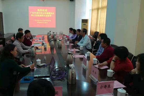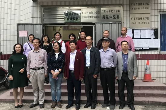 2018年11月30日,潘运利处长带队到广东石油化工学院开展工作调研,与该校分管离退休工作的彭志平副校长合影留念,与该校离退休处开展座谈交流,重点就新形势下如何进一步加强离退休党建工作进行研讨。