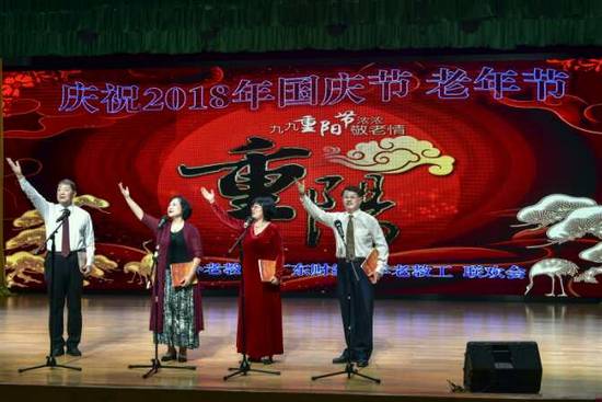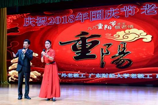 在国庆节和重阳节来临之际,2018年9月28日上午,我校老教工与广东财经大学老教工在我校北校区第六教学楼报告厅举行“庆祝2018年国庆节 重阳节联欢会”,两校老同志欢聚一堂,欢声笑语,喜庆佳节。
