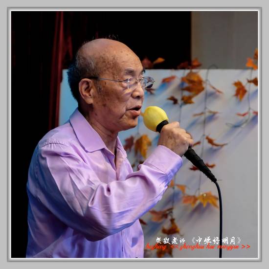 随后,我团88岁的元老贺政缓步走上舞台,高歌一曲《中华好明月》。贺老虽已年迈,但仍坚持参加合唱团的活动,他的激情演唱感动了每一个人。