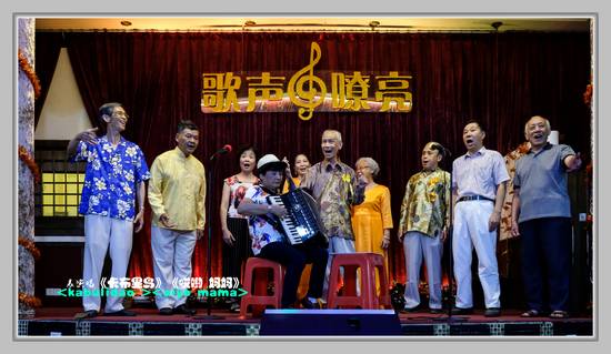 团友们兴致勃勃地放声歌唱了一批中外名曲,如《我爱你,中国》、《可爱的一朵玫瑰花》、《军港之夜》;歌剧卡门的《哈马涅拉舞曲》、《卡布里岛》、《莎丽楠蒂》等,既有慷慨激情的,又有抒情浪漫的,还不乏诙谐搞笑的。情到浓时,还有人进入舞池翩翩起舞,时而典雅从容,时而轻盈活泼……此时此刻,我们已经忘记了年龄,忘记了老态,仿佛又回到了那朝气蓬勃的青葱岁月。