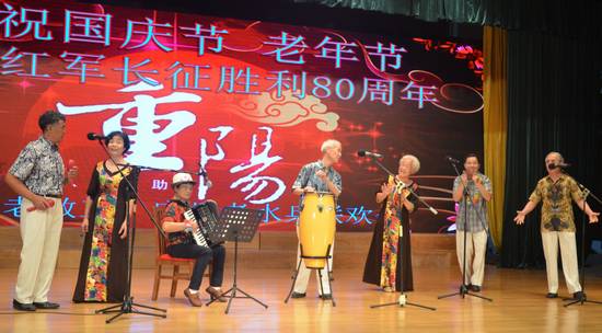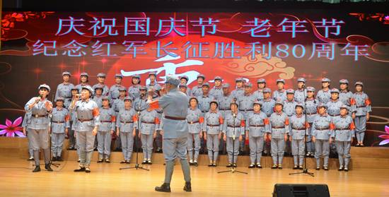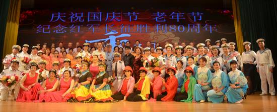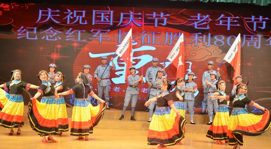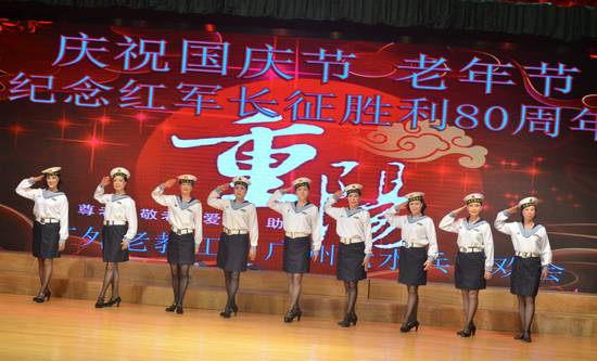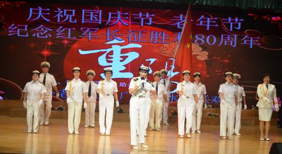 2016年9月28日上午,国庆节、老年节前夕,由离退休处组织筹备的我校老教工文艺社团(合唱团、舞蹈队、风采队、声乐班)与海军广州老水兵艺术团“迎国庆庆重阳”——纪念红军长征胜利80周年联欢会在六教报告厅举行,600多名老同志欢聚一堂,共庆佳节。分管离退休工作的校党委副书记李云明、校团委书记苏奕、广外大居委会副主任李霜媚等应邀出席。