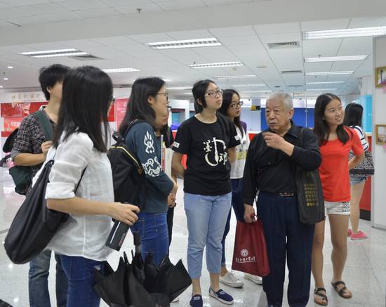 书法绘画篆刻摄影作品展刚开幕,就吸引了不少学生前来欣赏。古桂高老师还现场为学生朗读自己所写的诗歌、指导学生:“不仅要学好外语,还要学好中文”。