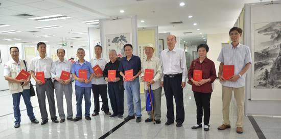 校党委副书记卢景辉为参展作品作者代表颁发纪念证书,并与他们合影留念