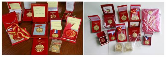老战士们获得的各类荣誉勋章
