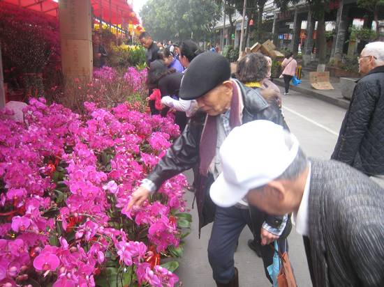 花市里人头涌涌,热闹非凡,体现出浓浓的年味和节日气氛。老干部们边走边看,流连忘返。临别,不少人买了心爱的盆桔、银柳、百合、康乃馨等,满载而归。