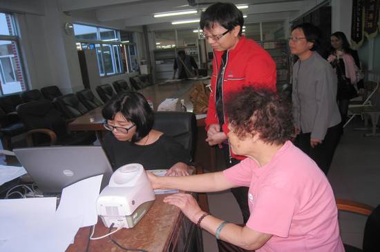 2014年11月18日下午,应我校部分老同志的要求,离退休处特邀如新(中国)日用保健品公司的销售团队在教工活动中心三楼离退休处会议室讲解生物光子扫描仪的优势,并为大家提供免费的健康指数测试与分析,深受老同志的欢迎。