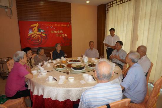 在我国第二个法定老年节前夕,9月19日上午,离退休处在清雅园三楼餐厅为我校今年年满80、90周岁的老同志举办集体生日宴会,10多位老寿星出席。