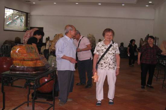 午饭后休息片刻,大家又兴味盎然地踏上了前往南粤苑的旅途。作为宝墨园的“姐妹园”,南粤苑是是一座山水园林与岭南建筑相融合、艺术珍品与岭南园林并茂的大型山水园林。园内有“巍雄聚秀”的大牌坊、九龙壁、迎客轩、舒心阁、四知亭、颐乐亭、汇源亭等华丽建筑群,有藏珍聚宝的“赵泰来藏品馆”、“霍宗杰藏品馆”、“云光璀璨珍宝馆”、“玉器馆”和“陶瓷馆”等五个展馆,以及紫水清华、百转回廊、云岩叠翠、清流漱石、桂苑飘香、飞瀑松音、乳花岩山水园林美景等20个景点。山水风光、名家字画、玉石等古董藏品令大家大饱眼福。