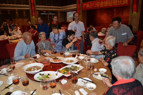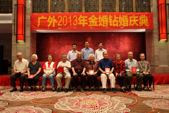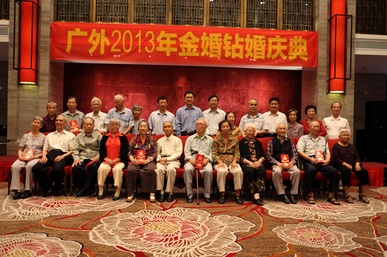 ,我处在广州逸林假日酒店为34对婚龄50年的金婚夫妇和12对婚龄60年的钻婚夫妇举行庆典。校党委书记隋广军、副书记陈建平、副校长许国彬,老同志离退休前所在单位的负责人,广州逸林假日酒店负责人,黄石街道办事处和广外居委会负责人,金婚钻婚夫妇子女代表等160多人参加。庆典活动由陈建平主持。