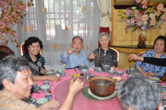 当天,恰逢84岁高龄的杨望硕老师的生日。中午,全体团员在“黄妈妈金牌私房菜馆”一边品尝美味的金牌私房菜――“当归天麻鱼头汤”及八宝酿鲮鱼,一边唱生日歌为杨老师庆祝生日,“黄妈妈金牌私房菜馆”也向杨老师送上生日礼物,令杨老师非常感动。