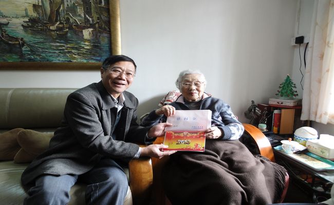 上午,陈建平副书记首先来到林如彤同志家中慰问。陈书记代表学校党委和校领导向林老拜个早年,并送上学校给老领导的节日慰问金,同时转交了省委省政府的节日贺卡和慰问金。林老今年97岁,是1938年入党的老党员,离休前是原广州外国语学院(广东外语外贸大学前身)副院长。林老看见陈建平副书记一行人非常高兴,和陈书记谈起过去的一年学校教育事业的发展、白云山隧道项目暂缓建设的好消息以及对新的一年的美好愿景,林老对省委省政府和学校党委、校领导的关怀表示非常感谢。