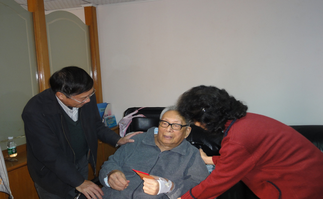 下午,陈建平副书记和离退休处一行人又到医院探望了高力夫同志。送上了学校的节日慰问金,转交了省委省政府的节日贺卡和慰问金。高老今年98岁,也是1938年入党,离休前是原广州对外贸易学院院长顾问。高老和家人对陈书记一行的慰问和省委省政府及学校党委校领导的关怀表示非常感谢。