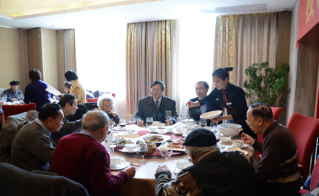中午,在党办校办和离退处的协调安排下,仲校长与陈建平、方凡泉、许国彬、顾也力、刘建达等校领导,以及人事处、宣传部、后勤处、保卫处等部门负责人一道,在逸林假日酒店与老领导、知名教授和享受副厅级待遇的离退休老干部吃团圆饭,向各位老领导、知名教授和老同志送上红包,带来蛇年新春的祝福和问候,祝他们在新的一年里身体健康、万事如意!