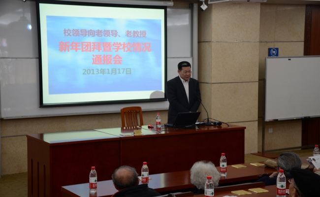 在蛇年春节来临之际,1月17日上午,在离退处的组织安排下,离退休老领导、知名教授和享受副厅级以上待遇的离退休老干部的专场团拜暨学校情况通报会在北校区第六教学楼B楼103教室隆重举行,共有30多名老领导、老教授、老同志出席了会议,会议由校党委副书记陈建平主持。