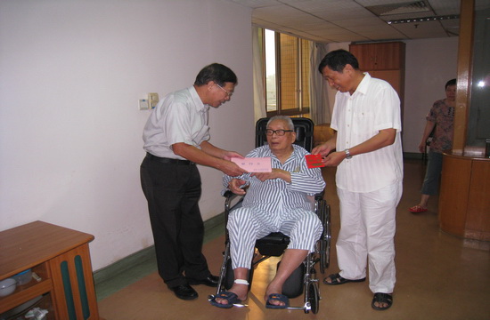 又临中秋、国庆团圆佳节。近日,校党委副书记陈建平、离退处王新贵等前往医院探望因病住院的97高龄的林如彤和高力夫两位老同志。转达了隋广军书记、仲伟合校长和校领导的节日问候。林如彤和高力夫两位老同志曾经参加抗日战争,离休前分别担任原广州外国语学院和广州对外贸易学院副院长,目前均享受副省级医疗待遇。陈建平代表学校党政领导向两位老同志转达节日问候和祝福,并转送省委组织部给两位老同志中秋国庆慰问金和学校的慰问金。在医院,林如彤老人还用法语与陈书记交流,谈到钓鱼岛问题,老人感同身受,发自内心地喊出“打倒日本帝国主义”的口号。林老和高老还再三感谢学校领导的关心。