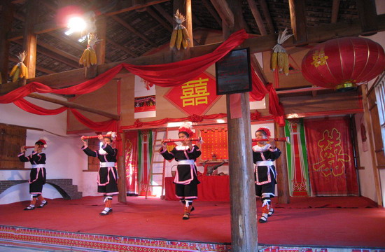 被誉为中国第一瑶寨之称的连南——千年瑶寨,依山而建,海拔800米。此寨始建于宋代,至今已有千年历史。一行人拾阶而上,走进古寨:镶入山体的石头木板屋、晶莹般剔透的山泉水、屋檐下的腊鸭腊肉、曲卷在酒坛里的“毒蛇”,甚至身着瑶服的大爹大妈脸上刀刻般的皱纹,似乎都在向人们述说着瑶族悠久的历史。青年小伙子和姑娘们演绎的爱情故事,传递着传统文化的“古典美”。而踩钢刀、长鼓舞等更展示了瑶族同胞坚忍不拔的风骨和千般柔情。